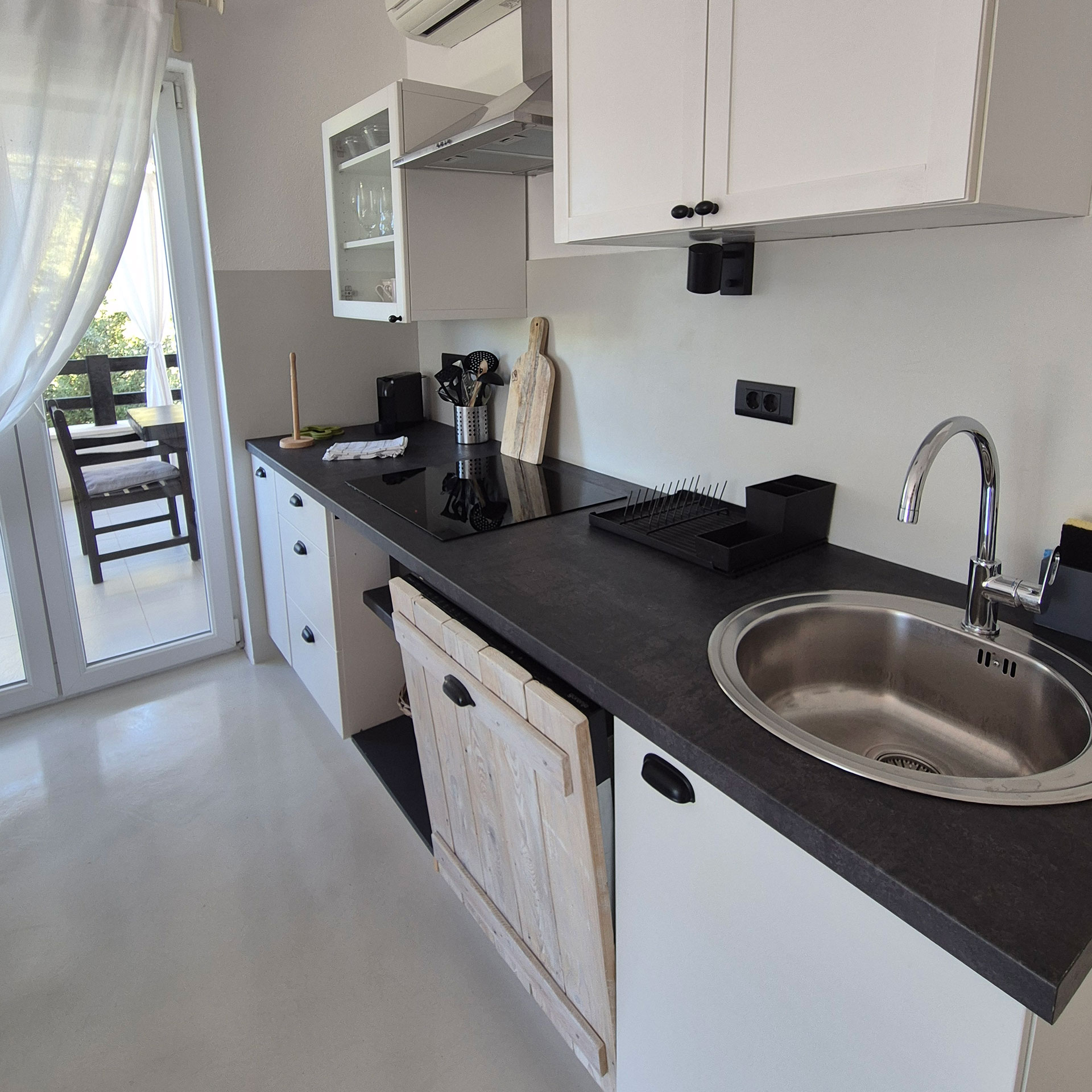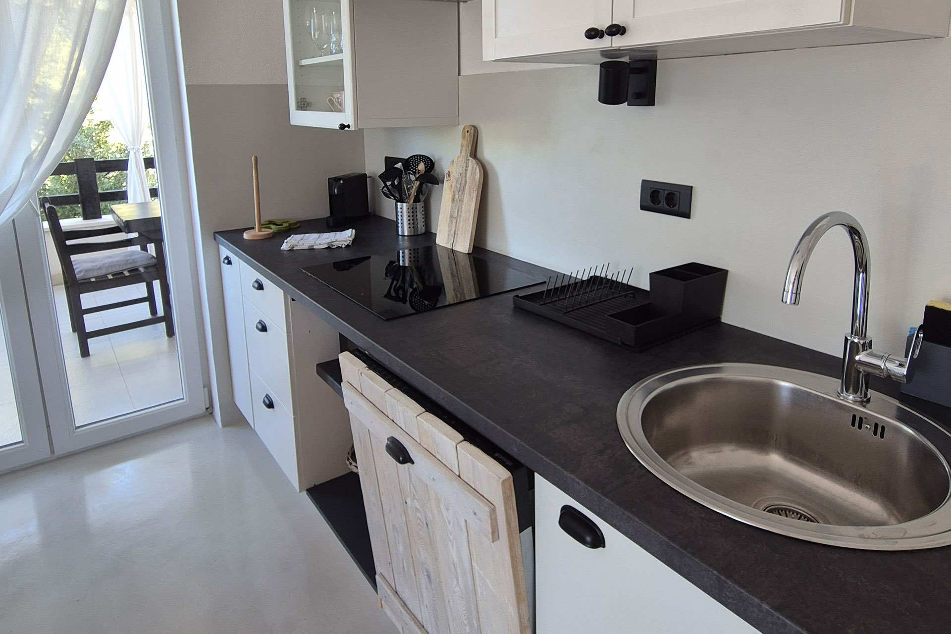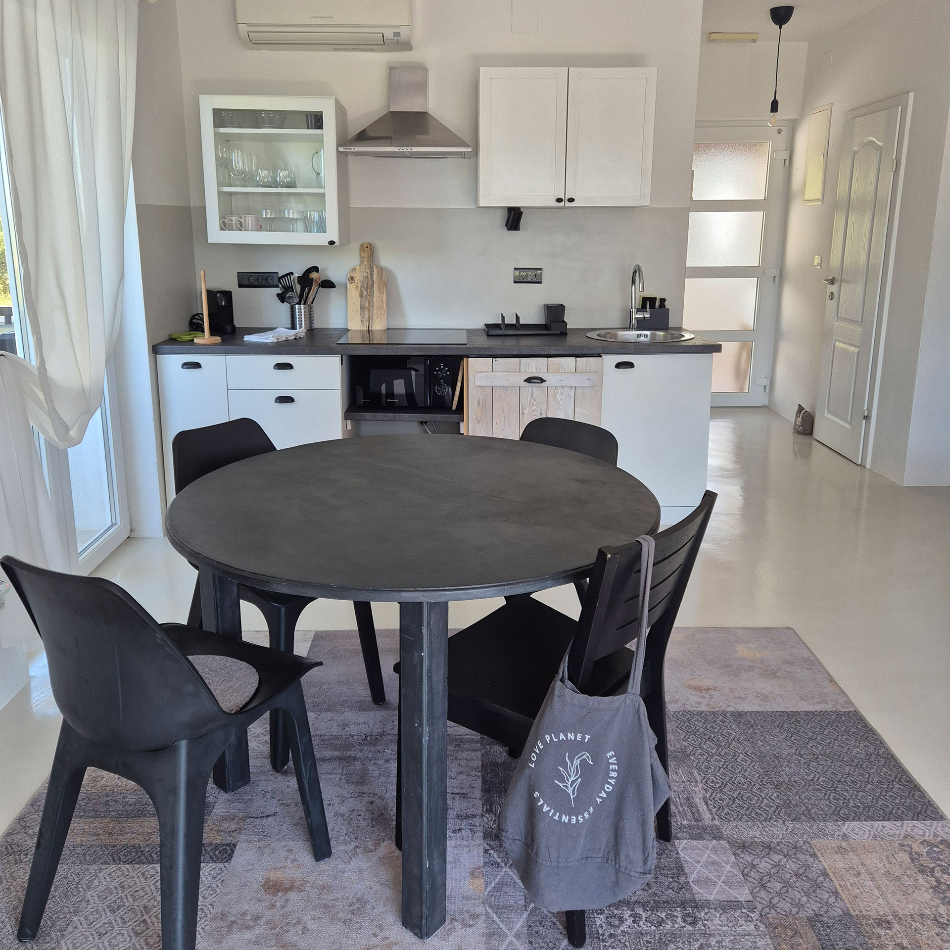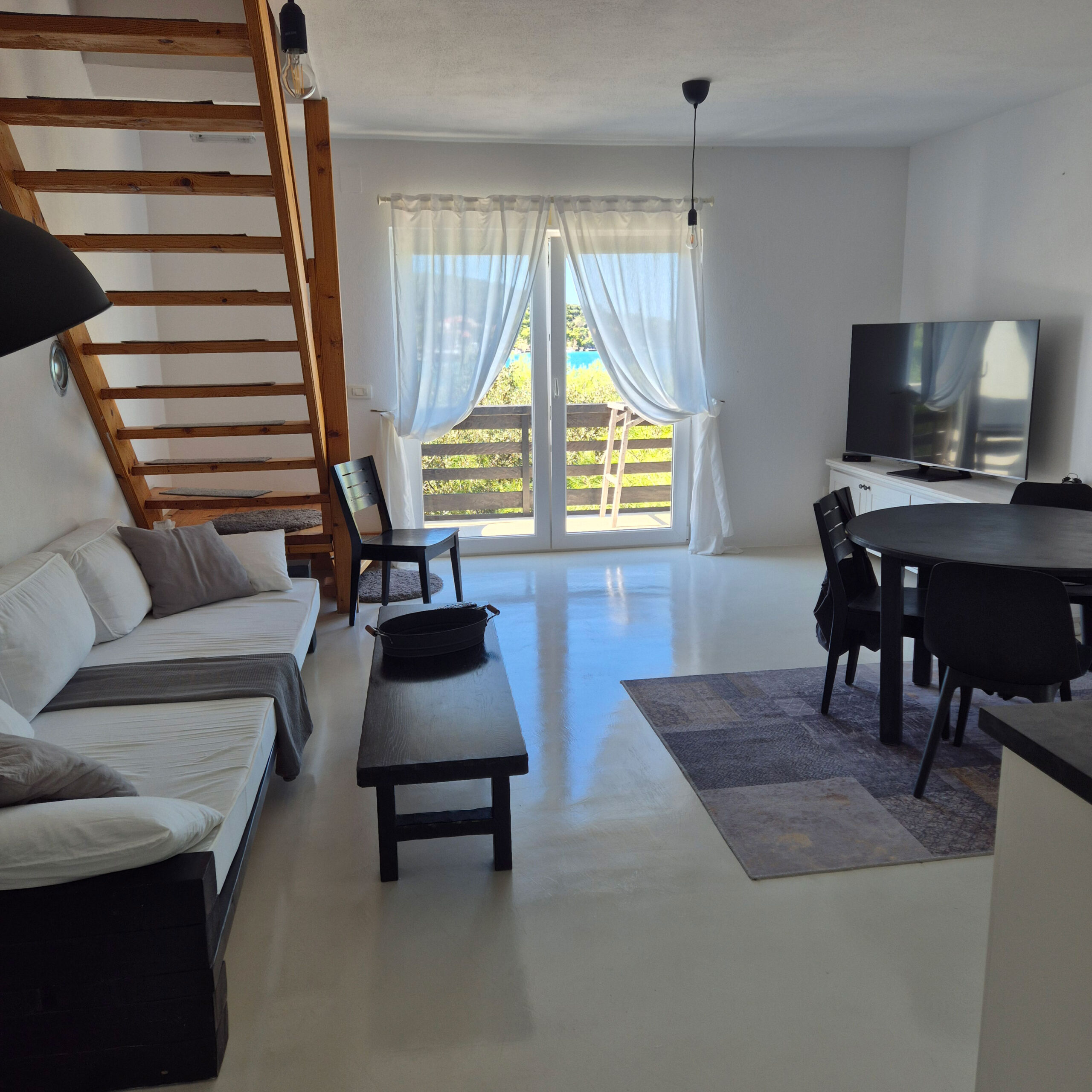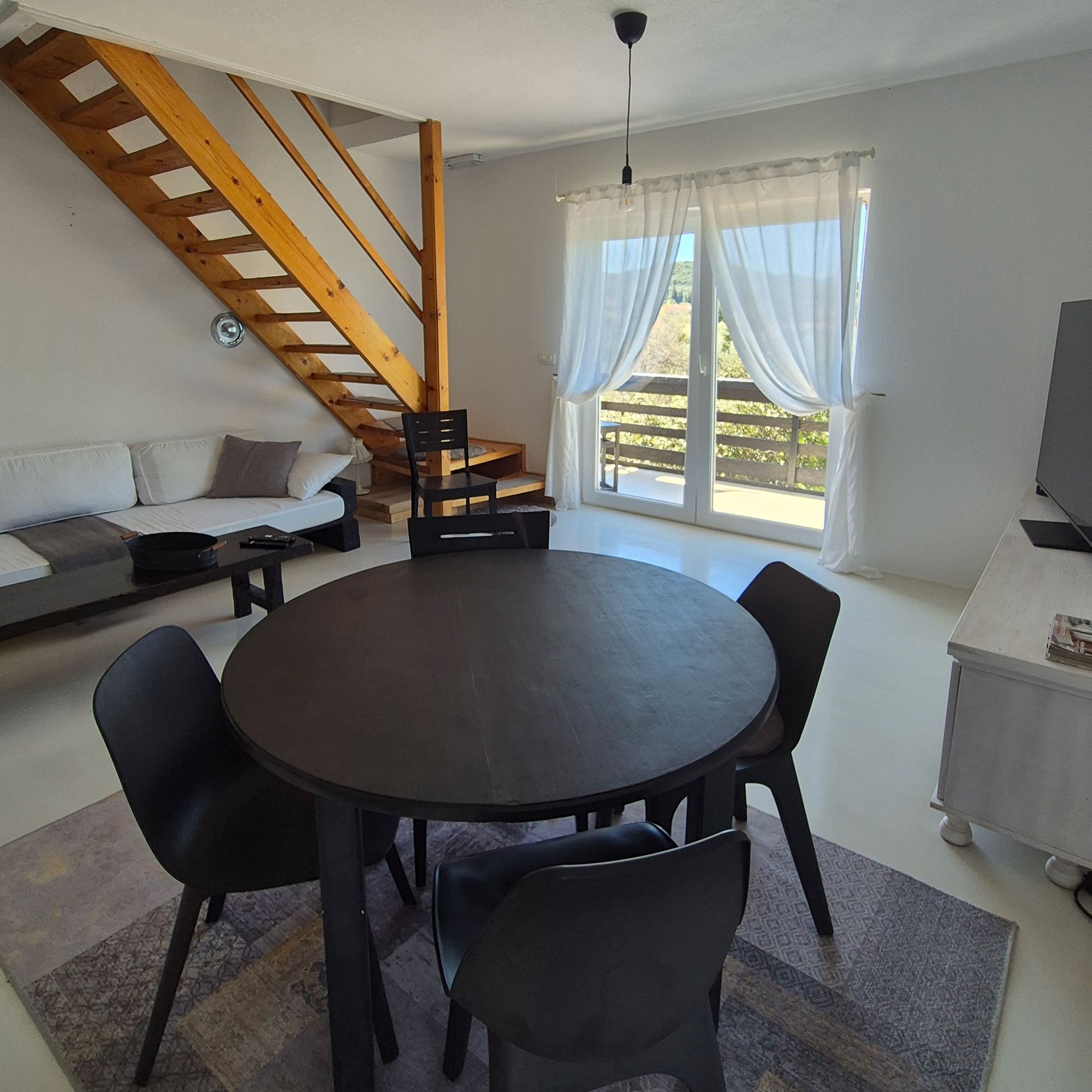Apartment Burin is located on the first floor. It’s covered terrace of 12 m2 will make all your holiday dreams come true. The apartment is on two levels (130m2) with two bedrooms, two bathrooms, one extra toilet, fully equipped kitchen, dining table and sofa bed.